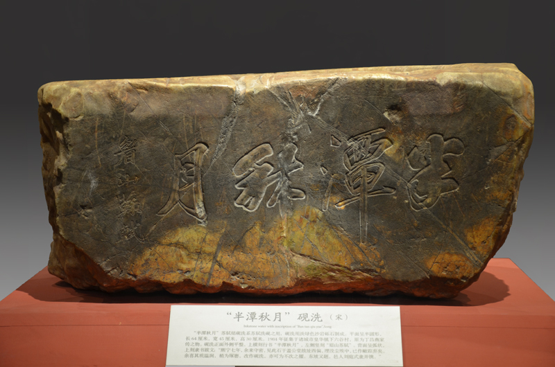 半潭秋月砚洗,系苏轼洗砚之用,砚洗用淡绿色沙岩砾石制成。来源/诸城博物馆